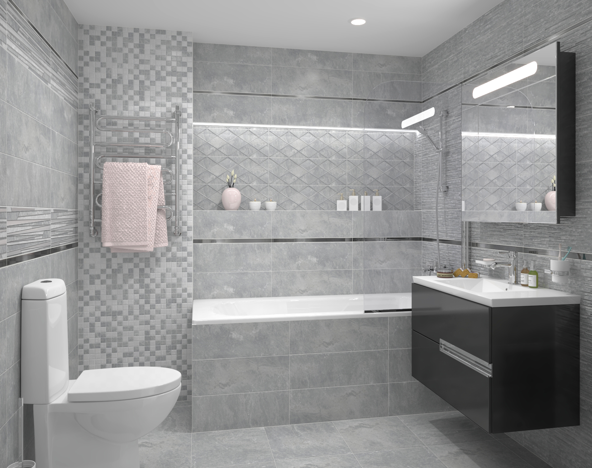 Алькор Плитка настенная серый мозаика 17-11-06-1188 20х60