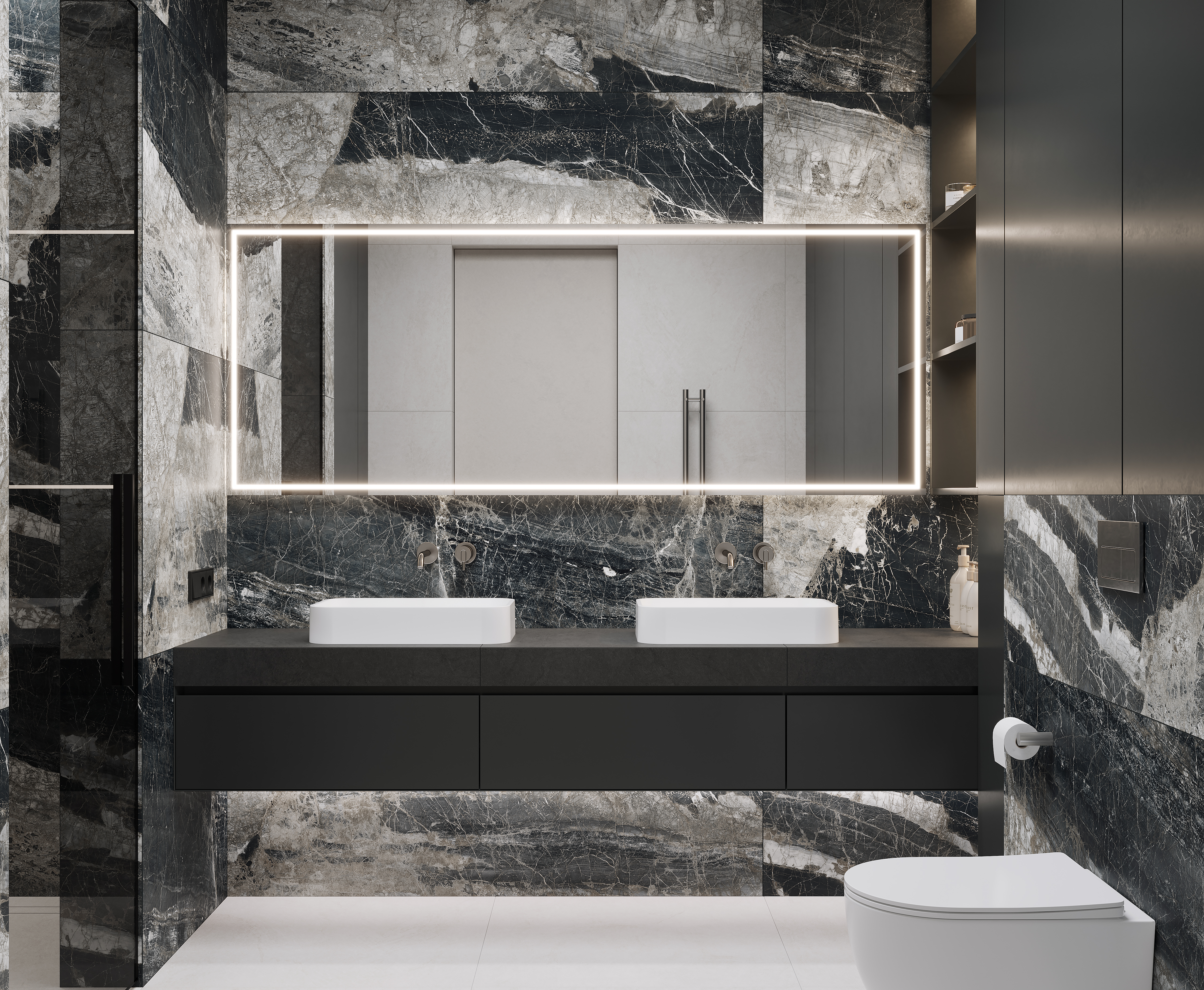 Лунар Неро Керамогранит графитовый 80х160 матовый+гл.чернила